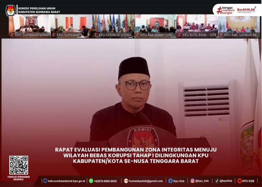 KPU Provinsi NTB menggelar rapat evaluasi Pembangunan zona integritas menuju wilayah bebas korupsi tahap I dilingkungan KPU Kabupaten/kota se-Nusa Tenggara Barat melalui media daring untuk meninjau pelaksanaan Pembangunan zona integritas Kepada masing-masing KPU Kabupaten/Kota. Ketua KPU NTB mengapresiasi kegiatan yang diselenggarakan tersebut karena sangat baik untuk mempercepat meraih predikat WBK di seluruh KPU Kabupaten/kota. Dalam rapat tersebut, masing-masing KPU Kabupaten/kota secara bergiliran menyampaikan hasil evaluasi yang telah di lakukan oleh tim penilai internal KPU NTB melalui Lembar Kerja Evaluasi (LKE), dari penyampaian LKE Kabupaten/Kota tersebut diketahui bahwa masih terdapat KPU Kabupaten/Kota yang tidak dapat memenuhi pengisian eviden pada LKE. Sekretaris KPU Provinsi NTB berpesan bahwa keberhasilan untuk memenuhi eviden dalam LKE tergantung pada Kerjasama seluruh komponen di KPU Kabupaten/Kota, selain itu beliau menekankan pada rapat evaluasi selanjutnya KPU Kabupaten/kota harus sudah mampu memenuhi eviden yang dimaksud. #HumasKPUKSB #KPUMelayani ....