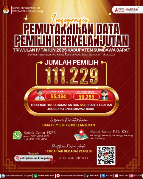 Komisi Pemilihan Umum Kabupaten Sumbawa Barat hadiri Pembekalan Pelaksanaan Program Inovasi Govote yang diselenggarakan oleh KPU Provinsi Nusa Tenggara Barat pada Sabtu, 13 Desember 2025. Kegiatan ini dilaksanakan di Gedung B KPU Provinsi NTB, Kota Mataram, sebagai upaya memastikan data pemilih yang komprehensif, akurat, dan mutakhir.