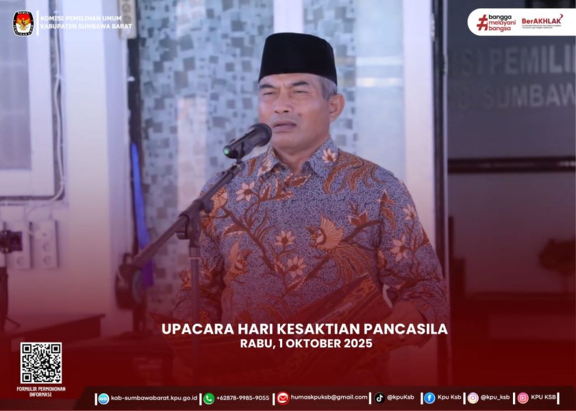 Rabu, 1 Oktober 2025 - KPU Kabupaten Sumbawa Barat melaksanakan Upacara Peringatan Hari Kesaktian Pancasila Tahun 2025 di halaman kantor KPU Kabupaten Sumbawa Barat. Upacara ini dipimpin oleh Inspektur Upacara, Ketua KPU Kabupaten Sumbawa Barat, Bapak Herman Jayadi, S.AP.