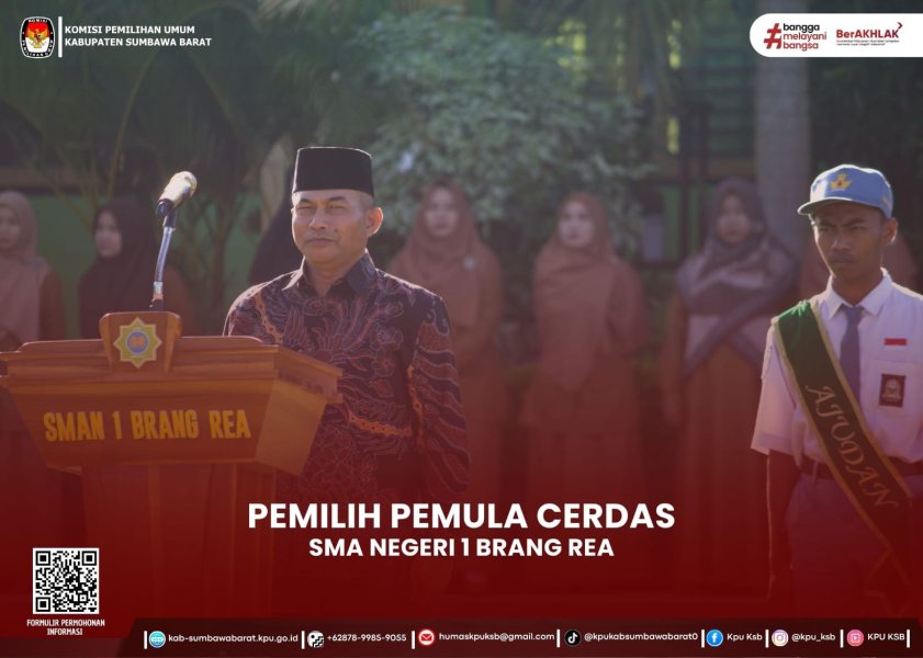 Senin, 20 Oktober 2025 - Ketua KPU Kabupaten Sumbawa Barat menjadi Pembina Upacara di SMA Negeri 1 Brang Rea. Dalam kesempatan tersebut, Ketua KPU Kabupaten Sumbawa Barat menyampaikan pesan penting kepada siswa dan siswi SMA Negeri 1 Brang Rea tentang pentingnya disiplin dan etika.