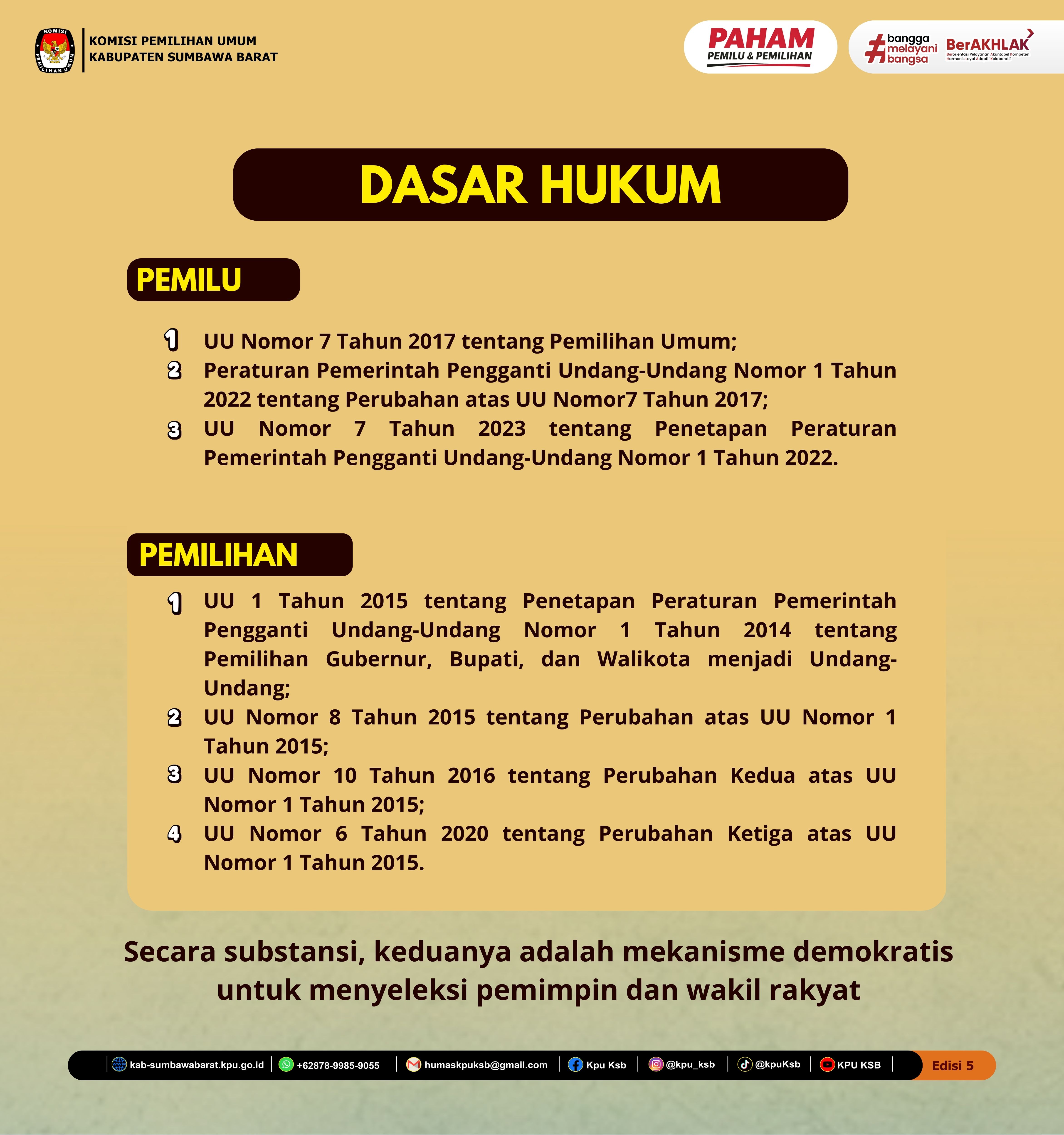 Edisi Ke-Lima membahas tentang Perbedaan PEMILU dan PEMILIHAN beserta dasar hukumnya.