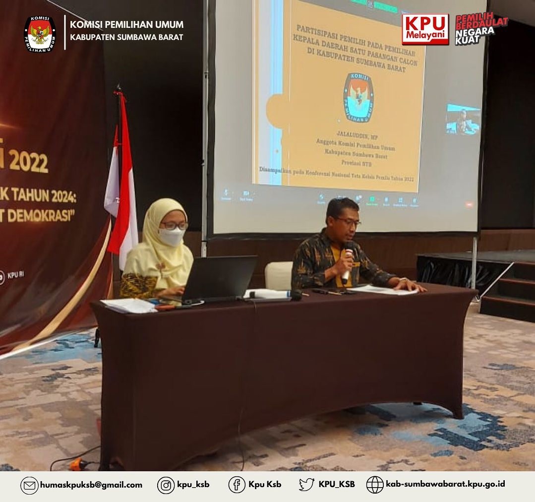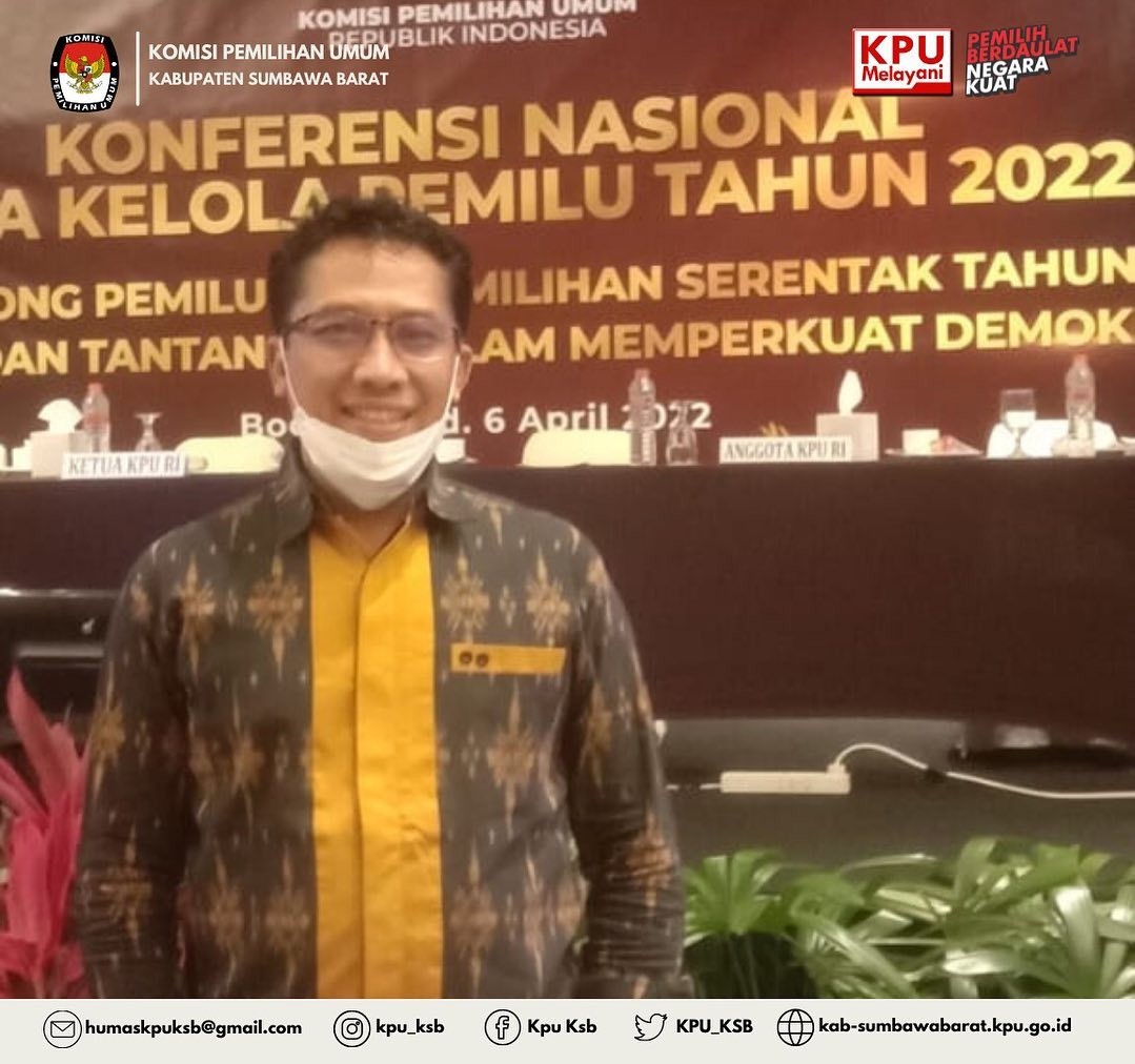 #TemanPemilih, Jalaluddin, M.P Anggota KPU Kabupaten Sumbawa Barat Divisi Teknis Penyelenggara menjadi Pemateri Konferensi Nasional Tata Kelola Pemilu Tahun 2022 dengan tema “Meneropong Pemilu dan Pemilihan Serentak Tahun 2024: Peluang dan Tantangan dalam Memperkuat Demokrasi”, Senin (4/04) di Bogor, Jawa Barat.