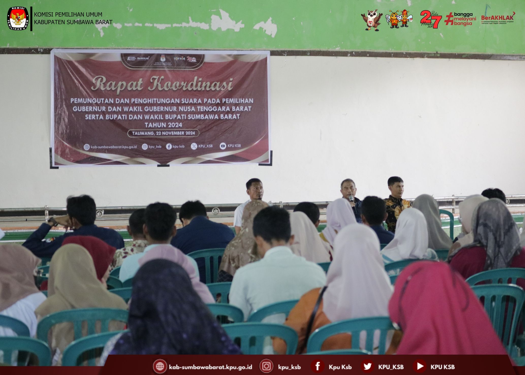#TemanPemilih Jumat, (22/11/24) KPU Kabupaten Sumbawa Barat Melaksanakan Rapat Koordinasi Pemungutan dan penghitungan Suara Pada Pemilihan Gubernur dan Wakil Gubernur NTB serta Bupati dan Wakil Bupati Sumbawa Barar pada Pilkada Serentak Tahun 2024. Acara Tersebut dibuka langsung oleh Ketua KPU Sumbawa Barat (Herman Jayadi) dalam dalam sambutanya berpesan kepada seluruh PPK dan PPS agar fokus mendengarkan semua arahan dan instruksi dari Pimpinan. Selanjutnya Ketua Divisi Hukum dan Pengawasan (Aliatullah) menyampaikan materi tentang Kode Etik Penyelenggaraan Pemilu dan Pemilihan serta menekankan kepada semua PPK dan PPS agar selalu menjaga Netralitas dan Integritas dalam melaksanakan tugas sebagai penyelenggara. Ketua Divisi Teknis Penyelenggaraan Pemilu (Supriadi) menyampaikan tentang Teknis dan Tata cara dalam pemungutan dan perhitungan suara di TPS pada pilkada serentak tahun 2024. Ketua Divisi Sosdiklih, Parmas dan SDM (gufran) menekankan kepada PPK dan PPS agar mengimpormasikan tentang pemungutan Suara di setiap wilayah kerja masing-masing. Rapat Koordinasi di laksanakan di Gedung Geraha Sudirman yang di ikuti oleh Seluruh PPK dan PPS Se Kabupaten Sumbawa Barat. #PilkadaDita #PilkadaDamai #HumasKPUKSB