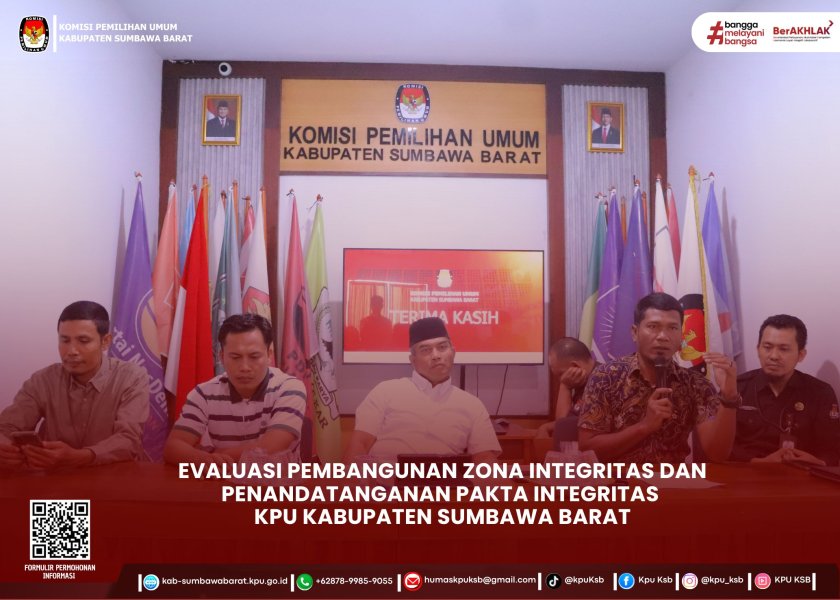 Rabu, 8 Oktober 2025 - KPU Kabupaten Sumbawa Barat melaksanakan Rapat Evaluasi Pembangunan Zona Integritas dan Penandatanganan Pakta Integritas. Kegiatan ini dibuka langsung oleh Ketua KPU Kabupaten Sumbawa Barat, Herman Jayadi, dan dilanjutkan dengan sambutan oleh Anggota dan Sekretaris KPU Kabupaten Sumbawa Barat.