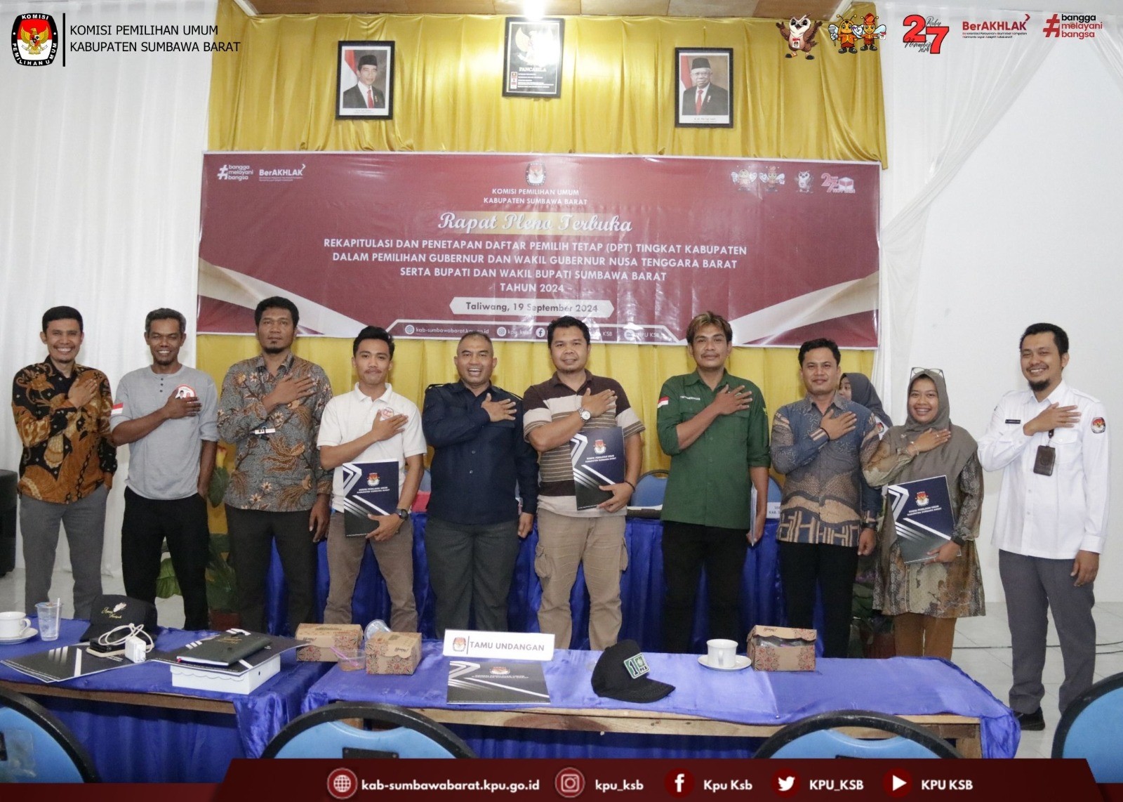 #TemanPemilih, Kamis, 19 September 2024 KPU Kabupaten Sumbawa Barat Melaksanakan Rapat Pleno Terbuka Rekapitulasi dan Penetapan Daftar Pemilih Tetap (DPT) Tingkat Kabupaten Sumbawa Barat dalam Pemilihan Gubernur dan Wakil Gubernur Nusa Tenggara Barat serta Bupati dan Wakil Bupati Sumbawa Barat Tahun 2024