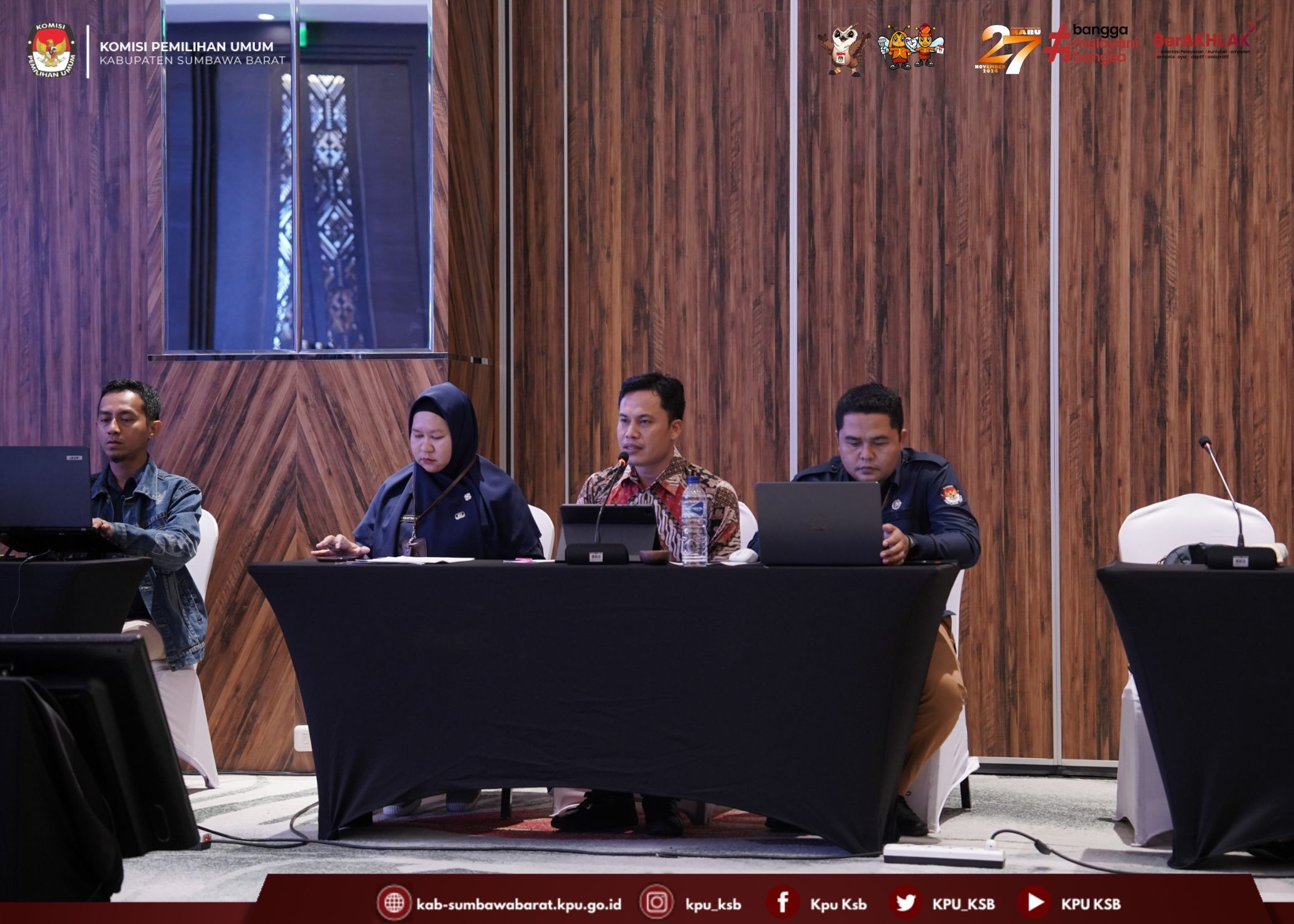 Rapat Pleno terbuka di pimpin oleh Ketua KPU Kabupaten Sumbawa Barat dan didampingi oleh Anggota serta Sekretaris KPU Kabupaten Sumbawa Barat.