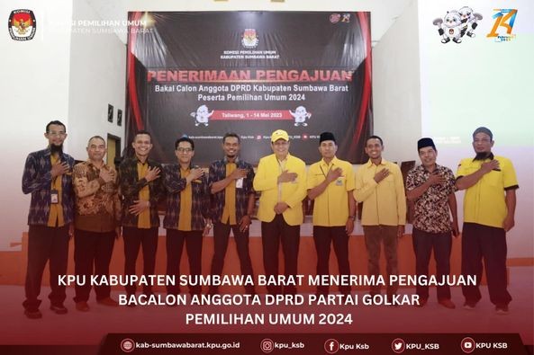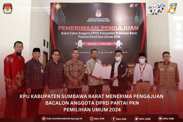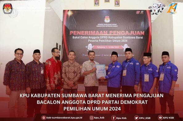 #TemanPemilih Komisi Pemilihan Umum Kabupaten Sumbawa Barat melaksanakan penerimaan Pengajuan Bakal Calon Anggota DPRD Kabupaten Sumbawa Barat dalam Pemilihan Umum Tahun 2024 dari Partai Demokrat, berkas Lengkap dan Diterima. Pada Hari Minggu, 14 Mei 2023 di Kantor KPU Kabupaten Sumbawa Barat.