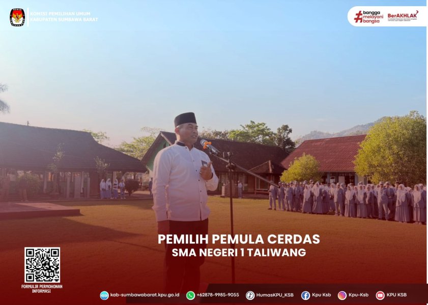 "Konsep Negara Demokrasi" Senin, 15 September 2025, Ketua KPU Kabupaten Sumbawa Barat, Herman Jayadi, menjadi pembina upacara di SMA Negeri 1 Taliwang. Dalam kesempatan ini, Herman Jayadi menyampaikan pentingnya pendidikan demokrasi bagi pemilih pemula. Sebagai bagian dari program KPU, pendidikan demokrasi untuk pemilih pemula bertujuan untuk meningkatkan kesadaran dan pemahaman tentang konsep negara demokrasi. Herman Jayadi menjelaskan bahwa dalam negara demokrasi, kedaulatan berada di tangan rakyat, dan rakyat memiliki kebebasan untuk memilih pemimpinnya. Ia juga menekankan bahwa siswa yang sudah berumur 17 tahun dan memiliki KTP sudah sah menjadi pemilih dan memiliki hak untuk memilih pemimpinnya. Dengan memahami demokrasi, siswa dapat memiliki ruang untuk berekspresi dan berpendapat. Kegiatan ini diharapkan dapat meningkatkan kesadaran politik siswa dan membentuk generasi muda yang cerdas dan berpartisipasi aktif dalam proses demokrasi. #PemilihPemulaCerdas #HumasKPUKSB #KPUMelayani