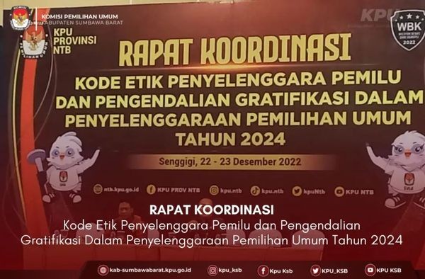 Ketua Divisi Sosdiklih, Parmas & SDM, Ketua Divisi Hukum & Pengawasan, Sekretaris, Kasubbag Hukum & SDM serta Staf menghadiri Rapat Koordinasi Kode Etik Penyelenggara Pemilu dan Pengendalian Gratifikasi dalam Penyelenggaraan Pemilihan Umum Tahun 2024, di Senggigi 22-23 Desember 2022.