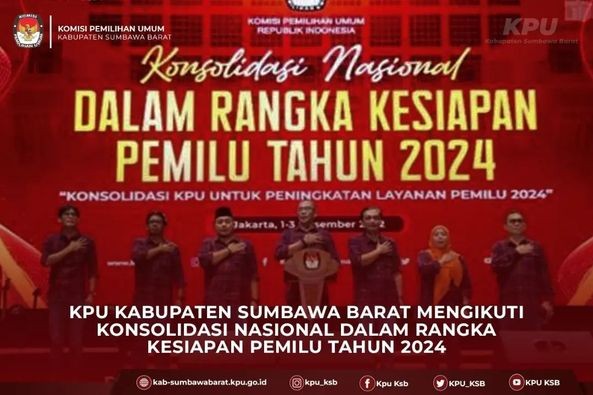 JAKARTA-Ketua, Anggota, Sekretaris, dan Kasubbag KPU Kabupaten Sumbawa Barat mengikuti kegiatan Konsolidasi Nasional dalam rangka kesiapan pemilu 2024 dengan tema "Konsolidasi KPU untuk Peningkatan Layanan Pemilu 2024". Konsolidasi nasional dilakukan dalam rangka menyambung rasa dan pikiran sebagai satu keluarga besar penyelenggara pemilu dalam menyukseskan pemilu serentak 2024.