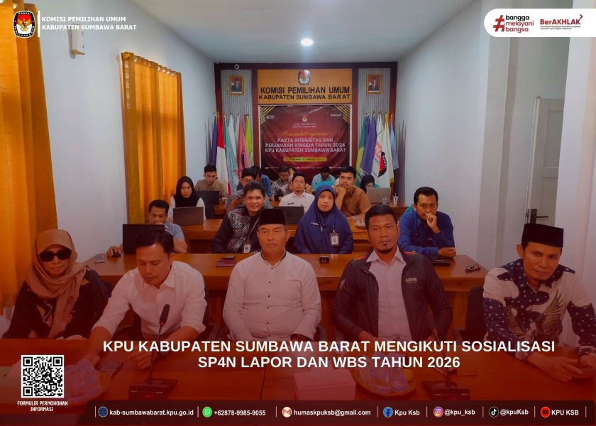 Kamis, 15 Januari 2026 - Komisi Pemilihan Umum Kabupaten Sumbawa Barat melaksanakan kegiatan Penandatanganan Pakta Integritas dan Perjanjian Kinerja Tahun 2026. Kegiatan ini diikuti oleh Ketua dan Anggota KPU Kabupaten Sumbawa Barat, Sekretaris, serta Kepala Subbagian di lingkungan Sekretariat KPU Kabupaten Sumbawa Barat.