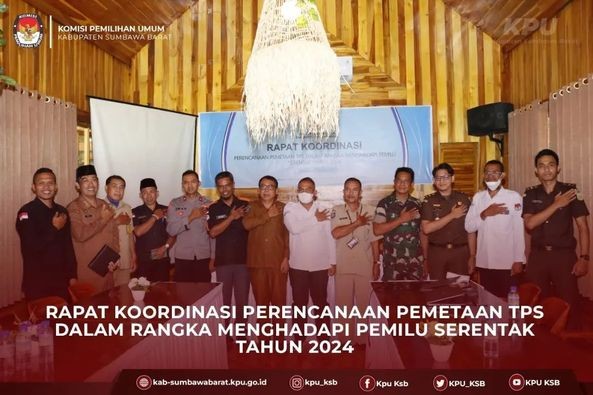 RAPAT KOORDINASI PERENCANAAN PEMETAAN TPS DALAM RANGKA MENGHADAPI PEMILU SERENTAK TAHUN 2024 Halo#TemanPemilih Senin, 10 Oktober 2022 KPU Kabupaten Sumbawa Barat melaksanakan Rapat Koordinasi Perencanaan Pemetaan TPS dalam Rangka Menghadapi Pemilu Serentak Tahun 2024 di ISG Coffee & Eatery, Taliwang, Sumbawa Barat. Rakor ini dihadiri oleh stakeholder antara lain Polres, Dandim 1628, Kejaksaan Negeri, Bawaslu, Bakesbangpoldagri, Dinas Dukcapil, dan Kabag Hukum Pemda Kabupaten Sumbawa Barat. Rakor dibuka dengan sambutan oleh Ketua KPU Kabupaten Sumbawa Barat Denny Saputra, S.Pd, dalam sambutannya beliau menyampaikan bahwa harapannya proses pelaksanaan pesta demokrasi bisa terlaksana dengan baik, sukses, dan aman tanpa menimbulkan masalah yang tidak diinginkan. Selanjutnya, penyampaian materi yang juga langsung disampaikan oleh Ketua KPU Kabupaten Sumbawa Barat. Terakhir rakor ditutup dengan sesi diskusi dan foto bersama. #KPUmelayani #PemiluSerentak2024