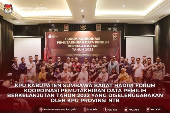 Kemudian acara dilanjutkan dengan koordinasi rekapitulsi pemutakhiran data pemilih berkelanjutan periode September yang dipimpin langsung oleh Kadiv Perencanaan, Data, dan Informasi KPU Provinsi NTB. Terakhir, rapat koordinasi ditutup dengan menetapkan jumlah Pemilih DPB Periode September Tahun 2022 sebanyak 3.702.571 Pemilih dengan rincian 1.826.422 Pemilih laki-laki dan 1.876.149 Pemilih perempuan, tersebar di 10 Kabupaten/Kota di Provinsi NTB.
