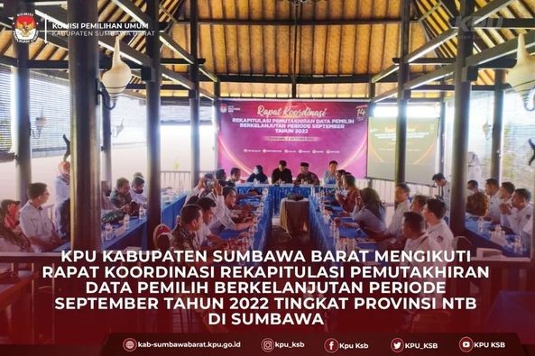 Rapat koordinasi diselenggarakan di Samawa Seaside Cottage, Sumbawa Besar dan dihadiri oleh Ketua dan Anggota KPU Provinsi NTB, Kadiv Perencanaan, Data dan Informasi, Kasubbag Perencanaan, Data dan Informasi serta Operator KPU Kabupaten/Kota se Provinsi NTB.