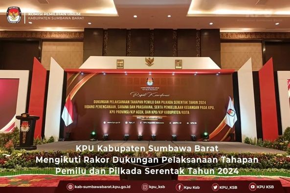 KPU Kabupaten Sumbawa Barat mengikuti Rapat Koordinasi Dukungan Pelaksanaan Tahapan Pemilu dan Pilkada Serentak Tahun 2024 Bidang Perencanaan, Sarana dan Prasarana, serta Pengelolaan Keuangan pada KPU, KPU Provinsi/KIP Aceh, dan KPU/KIP Kabupaten/Kota.