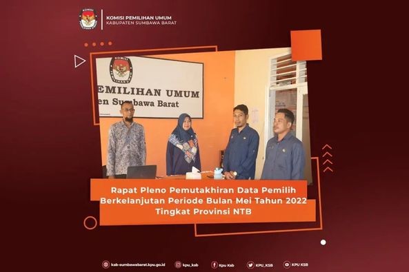 Selasa, 7 Juni 2022 KPU Kabupaten Sumbawa Barat mengikuti Rapat Pleno Pemutakhiran Data Pemilih Berkelanjutan (PDPB) periode bulan Mei tahun 2022 tingkat Provinsi NTB. Rapat Pleno diikuti melalui Zoom Meeting dan dihadiri oleh Ketua dan Anggota Komisioner KPU Provinsi NTB, Kadiv Perencanaan, Data dan Informasi, Kasubbag Perencanaan, Data dan Informasi serta Operator KPU Kabupaten/Kota se Provinsi NTB.