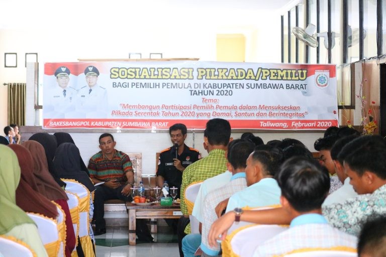 Sumbawa Barat-Komisi Pemilihan Umum (KPU) Kabupaten Sumbawa Barat menjadi narasumber dalam kegiatan Sosialisasi Pilkada/Pemilu Bagi Pemilih Pemula yang diselenggarakan oleh Badan Kesatuan Bangsa dan Politik Dalam Negeri (Bakesbangpol) Kabupaten Sumbawa Barat (KSB). Kegiatan dilaksanakan pada kamis (06/02), bertempat di aula kantor Bakesbangpol KSB. Hadir dalam acara tersebut Wakil Bupati Kabupaten Sumbawa Barat Fud Syaifuddin, Ketua KPU KSB Denny Saputra, Kaseg Binmas Polres Sumbawa Barat Iptu Ruslan Tayeb serta menghadirkan peserta perwakilan dari seluruh SMA/SMK se KSB sebanyak 130 orang. Kepala Badan Bakesbangpol KSB Abdul Hamid dalam sambutannya menyampaikan tema acara tersebut adalah “Membangun Partisipasi Pemilih Pemula Dalam Mensukseskan Pilkada Serentak Tahun 2020 yang Damai, Santun dan Berintegritas”. Ia juga menyampaikan terimakasih kepada seluruh peserta yang hadir dan meminta agar mendengarkan secara seksama apa yang akan disampaikan oleh narasumber. “Sosialisasi ini dalam rangka menjalankan amanat Undang-Undang, selain itu juga memberikan sosialisasi tentang pentingnya pemilihan untuk menciptakan pemilih yang cerdas santun dan berintegritas dan yang paling penting adik-adik sebagai pemilih pemula bisa megetahui mengenai hak dan kewajibannya” Kata Abdul Hamid dalam sambutannya. Selanjutnya Wakil Bupati Kabupaten Sumbawa Barat Fud Syaifuddin dalam sambutannya mengatakan apresiasi kepada penyelenggara dan narasumber yang hadir. Kegiatan ini sangat baik untuk memberikan edukasi penguatan nilai-nilai demokrasi bagi pemilih pemula karena pemilih pemula akan menjadi tombak estafet kepemimpinan kedepan. Ia menilai jika gagal memberikan sosialisasi pada saat ini maka pergerakan menuju demokrasi yang lebih baik akan semakin lama bisa diwujudkan. “ Kami ini ada eranya, nanti ada masanya kalianlah yang akan memimpin kami, untuk itu belajar, belajar dan terus belajar agar anak-anakku sekalian yang saya cintai bisa memimpin kami dengan bijaksana dan berintegritas kelak jika sudah datang masanya” pesan Fud Syaifuddin dalam sambutannya. Sementara Ketua KPU KSB Denny Saputra meyampaikan materi tentang penyelenggaraan pemilihan Bupati dan Wakil Bupati Sumbawa Barat tahun 2020 yaitu mengenai tahapan pemilihan Bupati dan Wakil Bupati Kabupaten Sumbawa Barat, peraturan-peraturan terkait penyelenggaraan pemilu, penyelenggara pemilu, tugas dan fungsi KPU, hak dan kewajiban pemilih serta syarat pasangan calon baik dari jalur partai maupun non partai. “ Dalam pemilihan ini semua elemen harus bekerjasama untuk menciptakan pemilihan yang demokratis, aman, damai dan transparan termasuk teman-teman yang hadir hari ini. Kami berharap setelah mendengar pemaparan tadi, tidak ada lagi yang bersifat apatis. Hampir semua sekolah yang hadir hari ini pernah kami datangi untuk sosialisasi dalam program Pilkatos, semoga apa yang kami sampaikan bisa menambah pemahaman dan bisa lanjut menjelaskan jika ada kerabat atau masyarakat yang bertanya tentang pemilu ataupun pilkada’’ kata Denny Saputra. Sementara Iptu Ruslan Tayeb menyampaikan materi tentang Pilkada langsung dan tantangan Polri dalam penegakan hukum dan Cipta sistem kamtibmas.