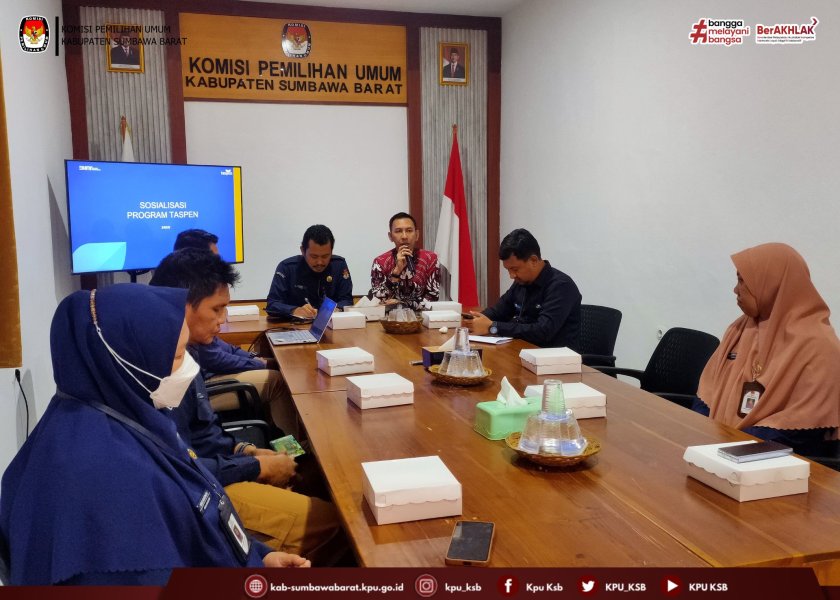 KPU Kabupaten Sumbawa Barat mengundang PT Taspen untuk mensosialisasikan program Jaminan Sosial kepada Pegawai Pemerintah dengan Perjanjian Kerja (PPPK), Selasa (24/6/2025) di Aula Kantor KPU Kabupaten Sumbawa Barat.