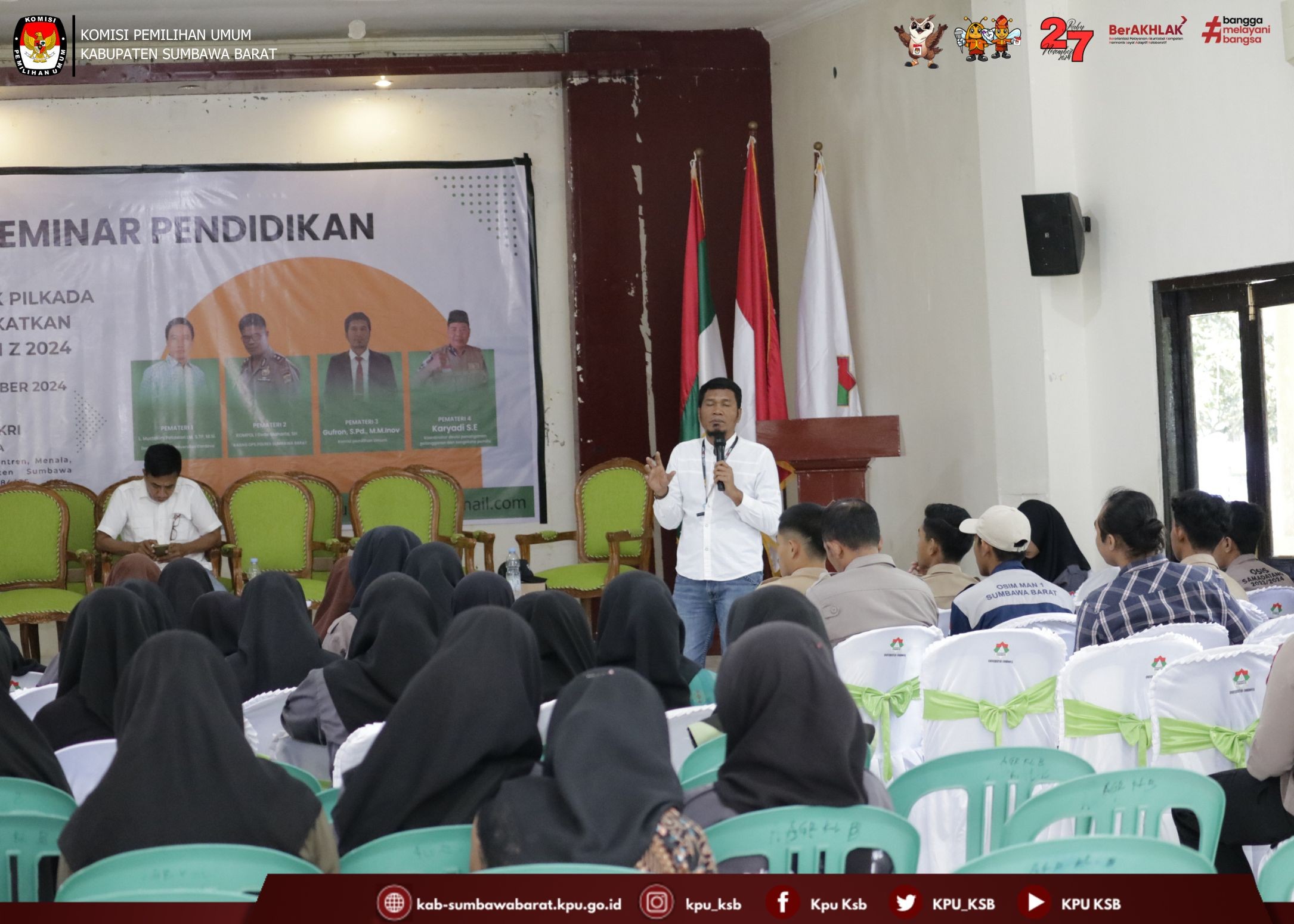 #TemanPemilih, Sabtu (14/09/2024) Ketua Divisi Sosialisasi, Pendidikan Pemilih, Partisipasi Masyarakat, dan Sumber Daya Manusia KPU Kabupaten Sumbawa Barat, Gufran menjadi Narasumber dalam Kegiatan Seminar Pendidikan Edukasi Politik Pilkada Dalam Meningkatkan Partisipasi Gen Z 2024 yang di adakan oleh BEM Universitas Cordova bertempat di Aula Baitus Syakuri Universitas Cordova