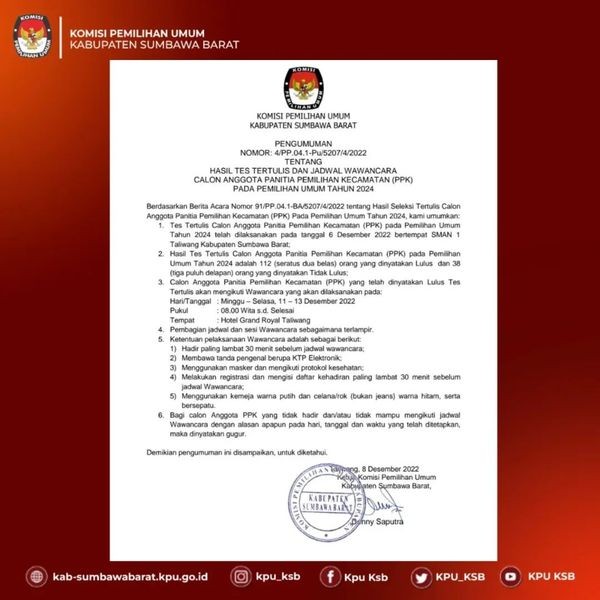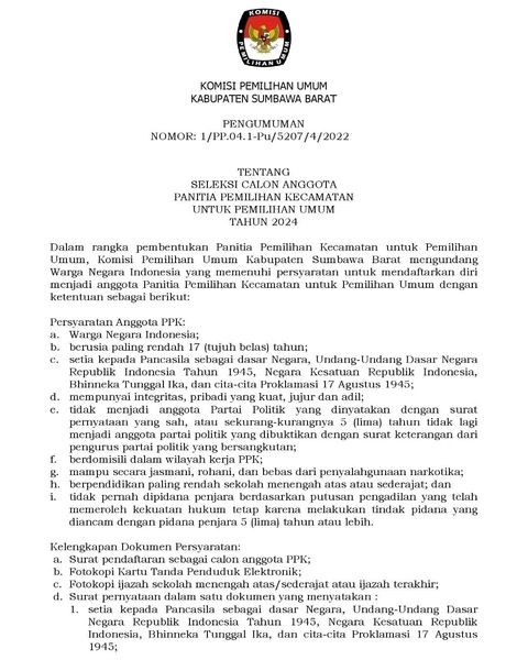 Bagi Pelamar Calon Anggota PPK Kabupaten Sumbawa Barat kami ingatkan: